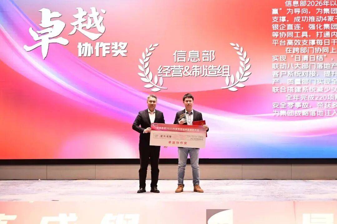 卓越项目经理奖:办公室李喜安,主导了集团智慧中心展厅建设与运营项目,并成功牵头申报多个国家级重点项目,获得超9000万元资金支持;高效完成年度报批报建工作,保障集团重点项目顺利推进;积极拓展产业延伸,推动了多个项目落地实施并产生效益。